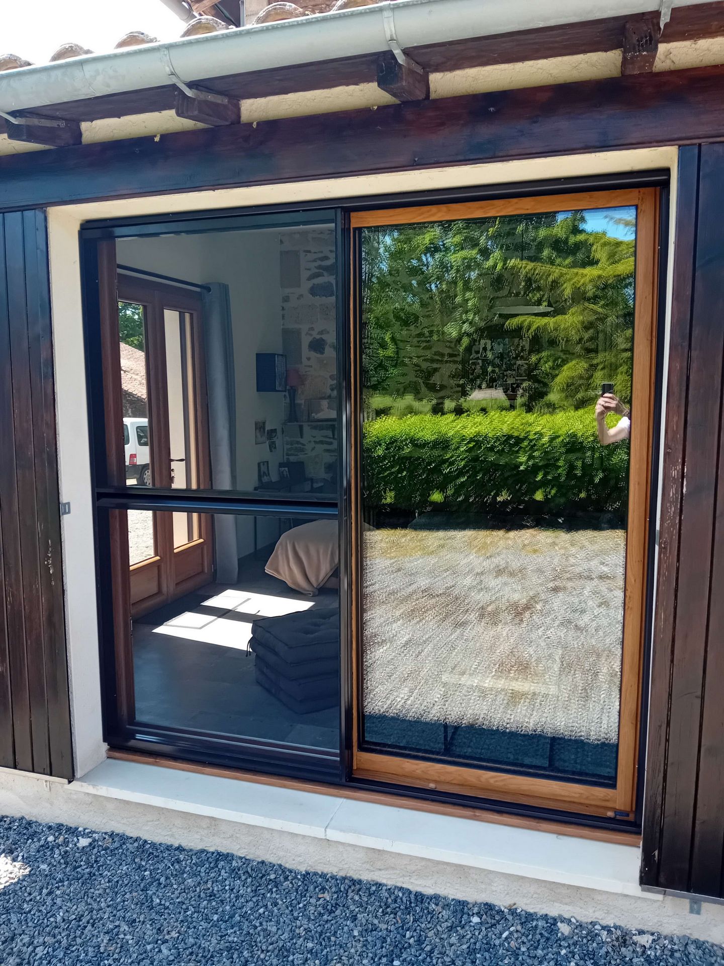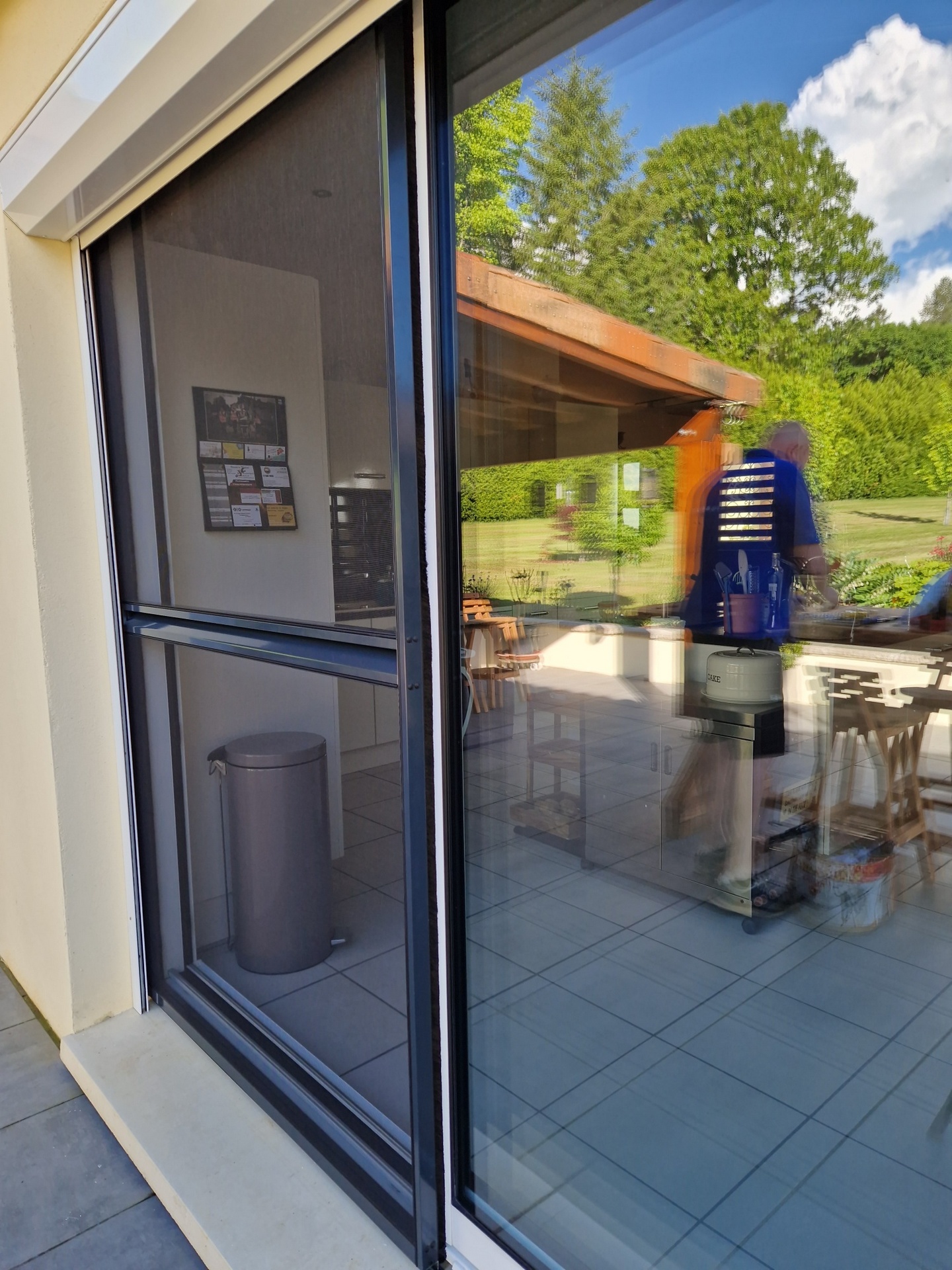 Si des volets roulants sont présents, un profil plus fin est utilisé pour la porte-moustiquaire coulissante.